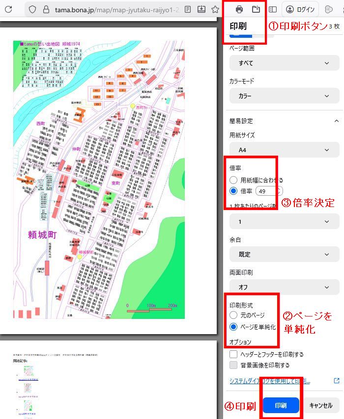 B)大判の個別住宅地図は「print印刷」では表示が斜めになるので、
