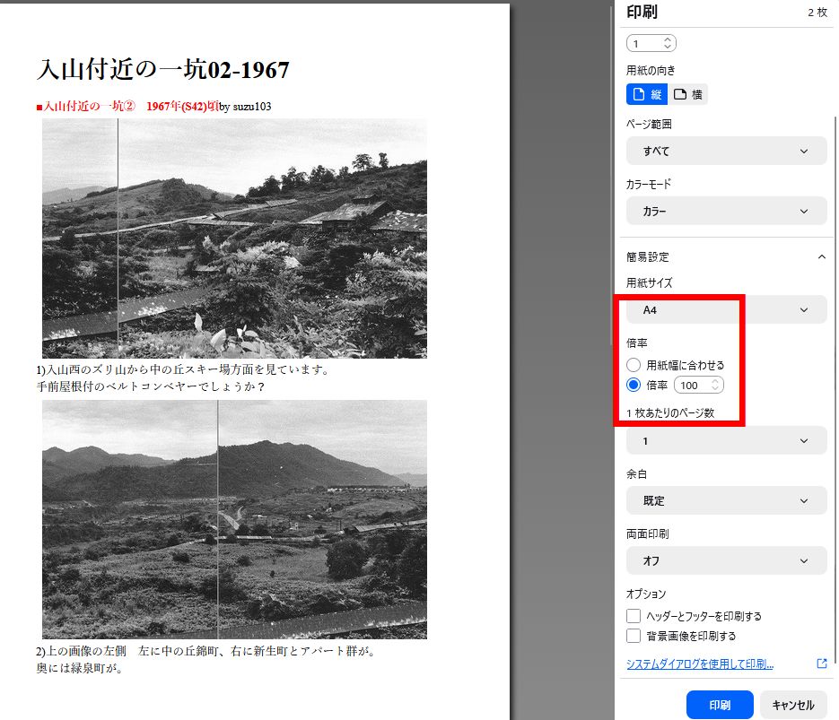 後はお使いのプリンターを選択し倍率を選び、印刷してください。